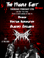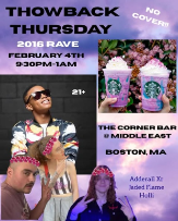 The Middle East Restaurant & Nightclub was founded in 1970 by the Sater family. Originally opened as a restaurant, the establishment added the first music venue in 1975 (which is now the Middle East Upstairs), and continued to expand the institution over the decades, adding the Corner and the Downstairs in 1988. The Sater family's Lebanese heritage has been a large contributing factor to the unique and ornate atmosphere the club, guaranteeing a memorable experience for all. With performances from bands of every genre imaginable accessible to enjoy seven nights a week, and venue capacities from 100 to 550 people, The Middle East offers something special for everyone. In recent years the club has won multiple awards, including Boston's best mid sized venue. The club also made Rolling Stone's 2013 Venue's That Rock list.